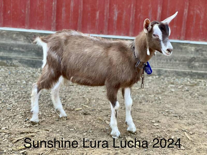 Lucha was a late addition to the Toggenburg herd this fall. Jason had been thinking about bringing back in some of the Sunshine blood lines that had formed the base for Jason's herd. Lucha is a young buck and has proven he's ready to work. He has the smoothly blended body type that you expect when looking a Sunshine breed animal with a great set to his feet and legs.